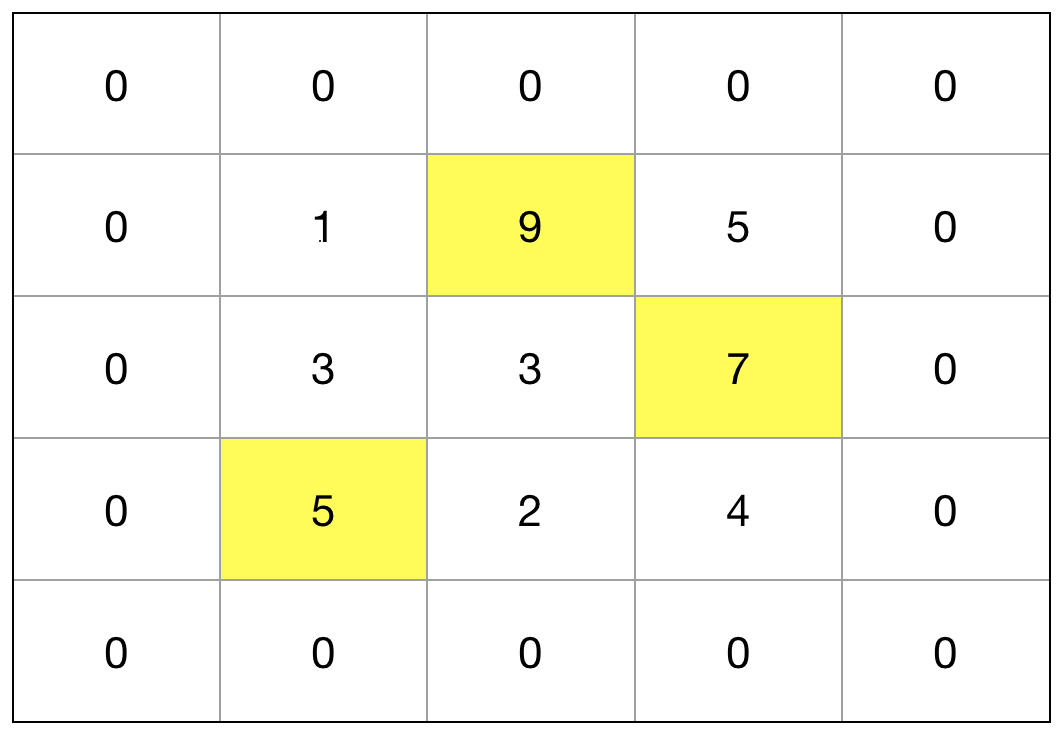 위 그림과은 3*3 행렬이 주어진 후, 격자판 가장자리를 0으로 초기화 했을때의 그림이다.