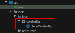 src/main/java 경로에 Controller 디렉터리를 생성 후 HelloController.java 파일을 아래와 같이 생성하자.