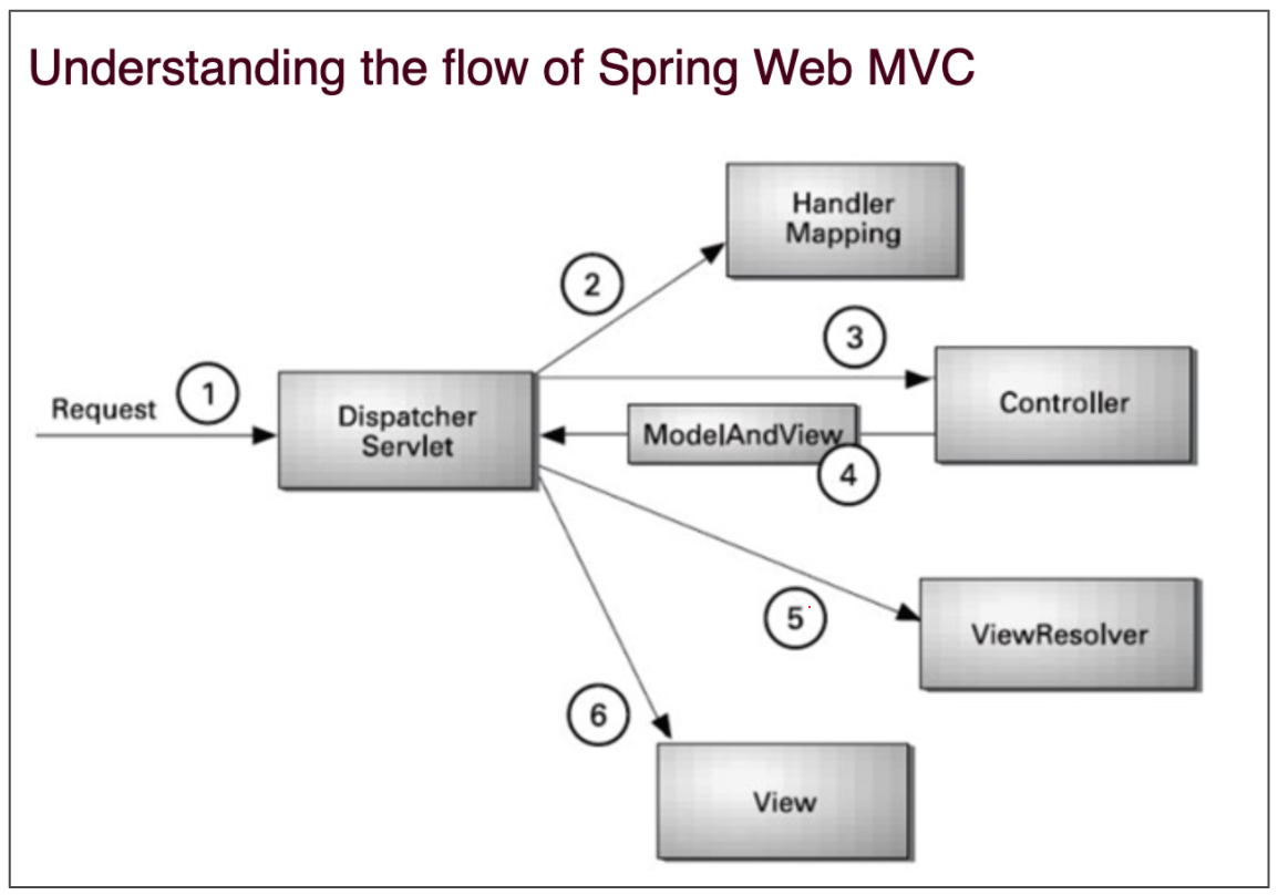 - 과정을 간략히 살펴보자면, Http Request 시 먼저, Dispatcher Servlet에서 요청받은 내용을 처리한다.
