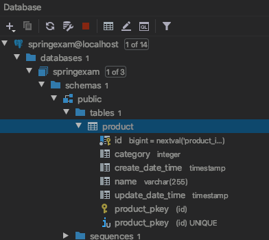 생성된 DB는 인텔리제이나 postgres 서버에서 확인할 수 있다.