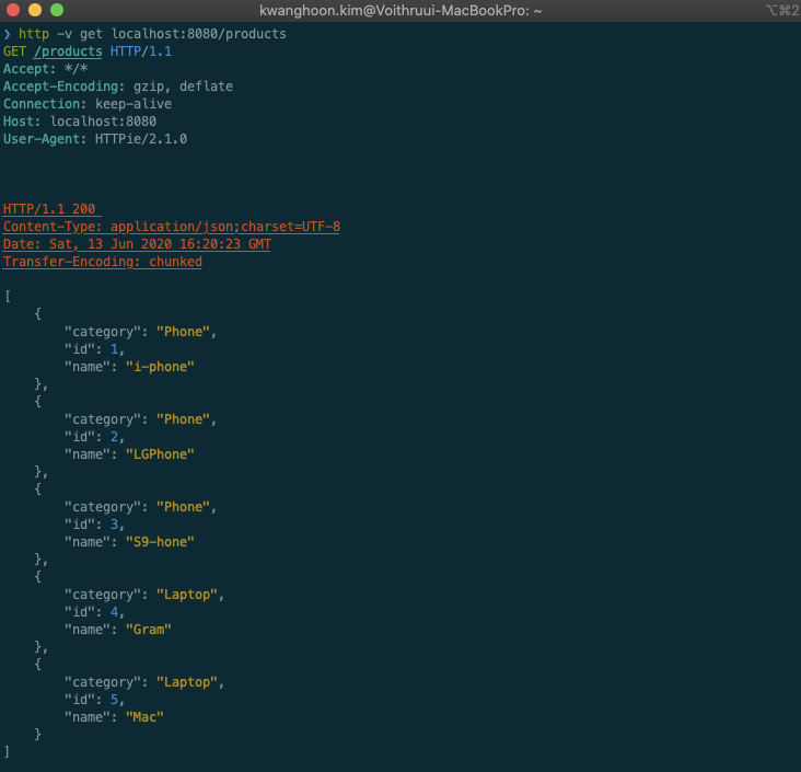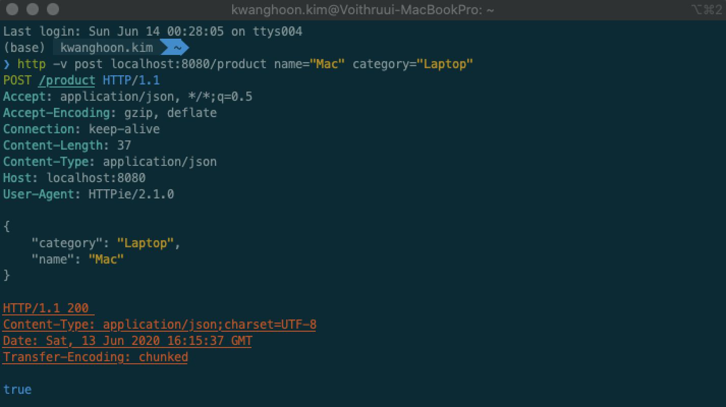 실행 후 httpie를 사용하여 Request 결과 아래와 같이 정상 적으로 동작하는 것을 알 수 있다.