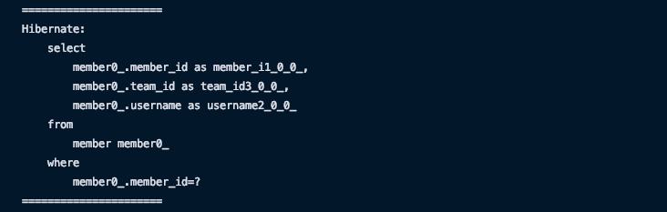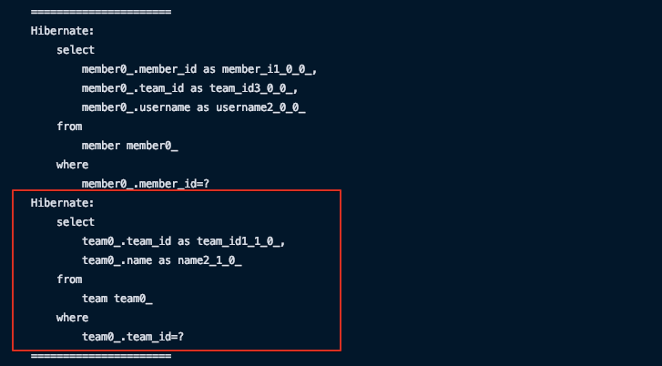 Team 조회 시 쿼리가 한 번이 나갔지만 Member 조회 시 쿼리가 두 번 나가는 것을 볼 수 있다.