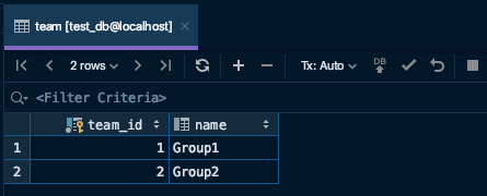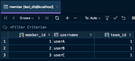 Team과 Member 테이블에 등록된 데이터는 아래와 같다.