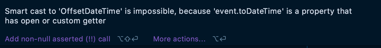 Smart cast to 'Type' is impossible, because 'variable' is a mutable property that could have been changed by this time