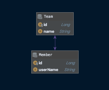 간단하게 Team 과 Member 테이블을 만들었으며, ManyToOne 과 OneToMany 양방향으로 테스트를 하려고 한다.