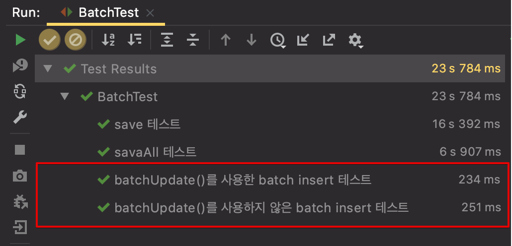 이제 모든 구현이 끝났지만, 추가적으로 batchUpdate() 메소드 없이 구현하는 방법도 살펴보려고 합니다.
