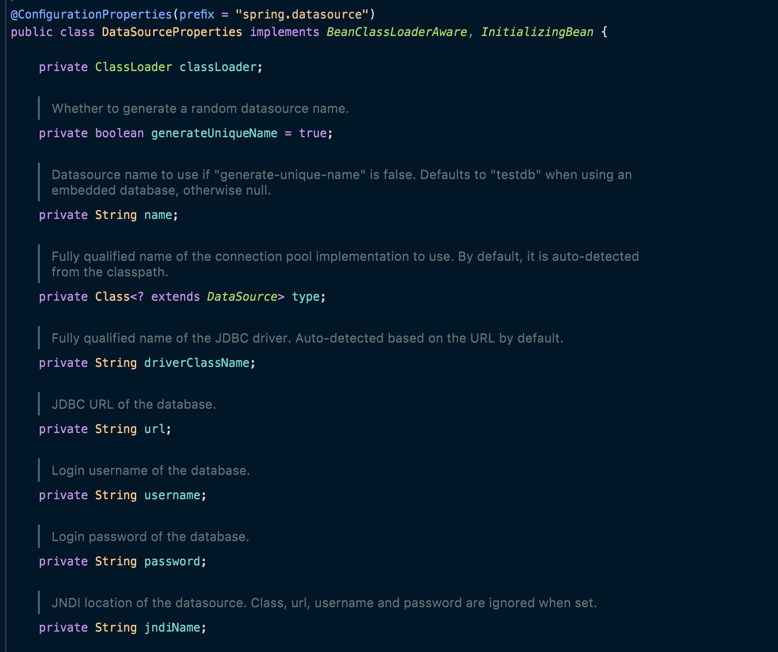 아래는 DataSourceProperties 코드이다.