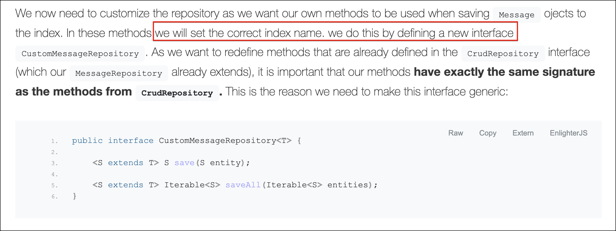 하지만 우리가 필요한 것은 index + XXX 에 저장하는 것이 목표이기 때문에 새로운 레포지토리 인터페이스를 만들어야 한다.