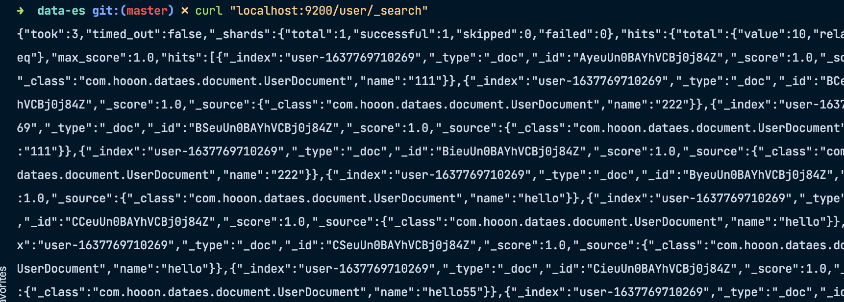 index 이름은 user-1637745625207, user-1637745625210 등 user 를 prefix 로 사용하려고 한다.