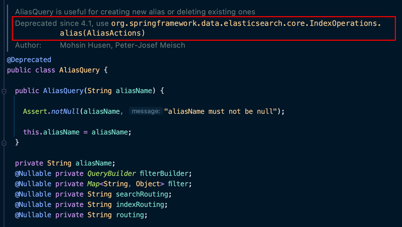 AliasQuery is deprecated in Spring Data Elasticsearch 4.1