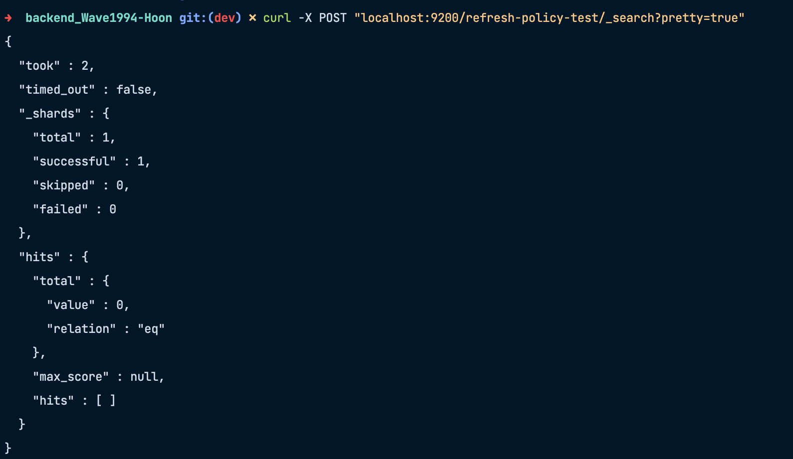 이 글에서는 문제가 된 이슈를 해결하기 위해 wait_for 사용하려고 하기 때문에 RefreshPolicy 를 WAIT_UNTIL 으로 세팅하려고 한다.