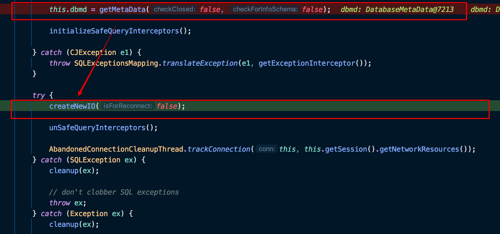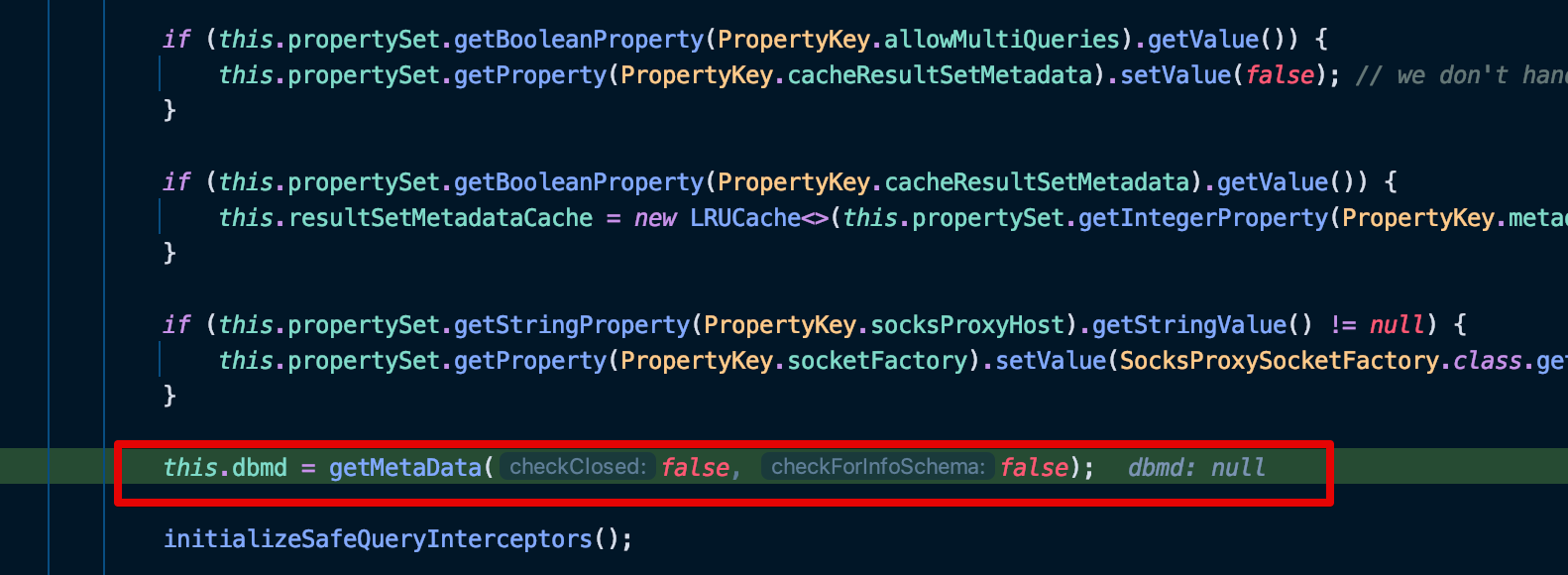 그 다음으로 ConnectionImpl 클래스 생성자에는 여러 로직들이 들어있어 다소 코드 라인이 좀 길다.