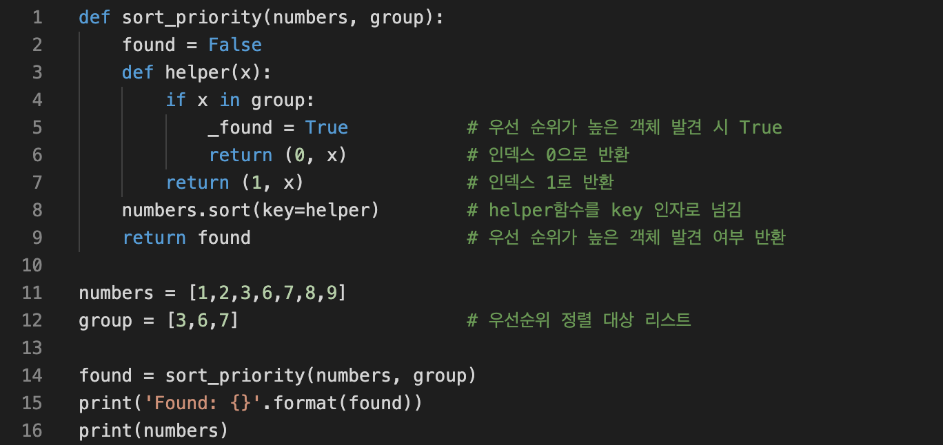 우선순위가 높은 객체를 리스트로 반환했지만 Found 값이 True로 반환되지 않은 이유는 Found 변수는 helper 함수에서는 True로 할당이되지만, sort_priority 함수에서는 여전히 False이기 때문이다.