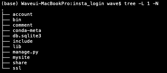 아래 명령어를 사용하여 프로젝트(mysite)와 앱(account)을 생성하였다.