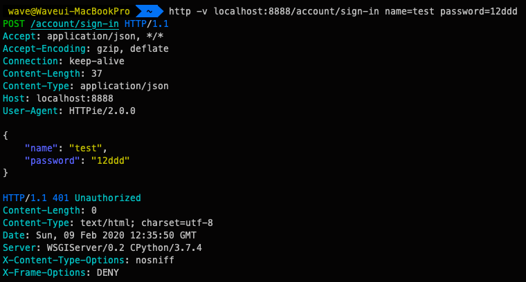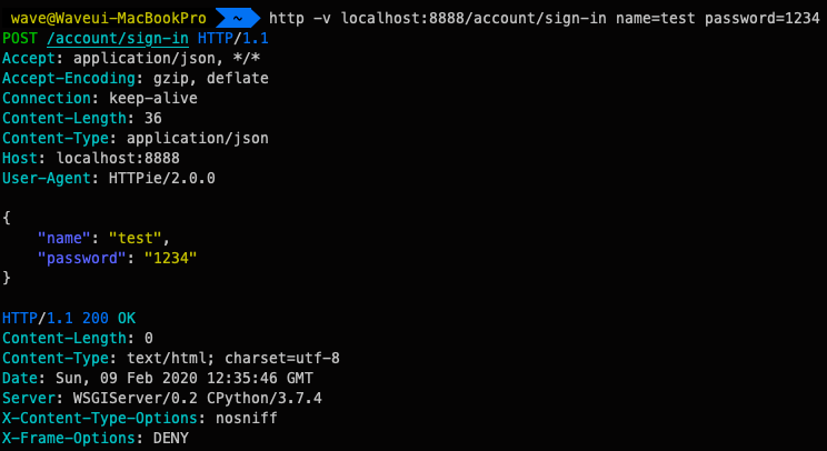 ''brew install httpie" 명령어로 httpie를 설치 후 http -v [Server Ip:port]/경로로 Request 요청을 보내 정상적으로 코드가 작성이 되었는지 테스트 하였다.
