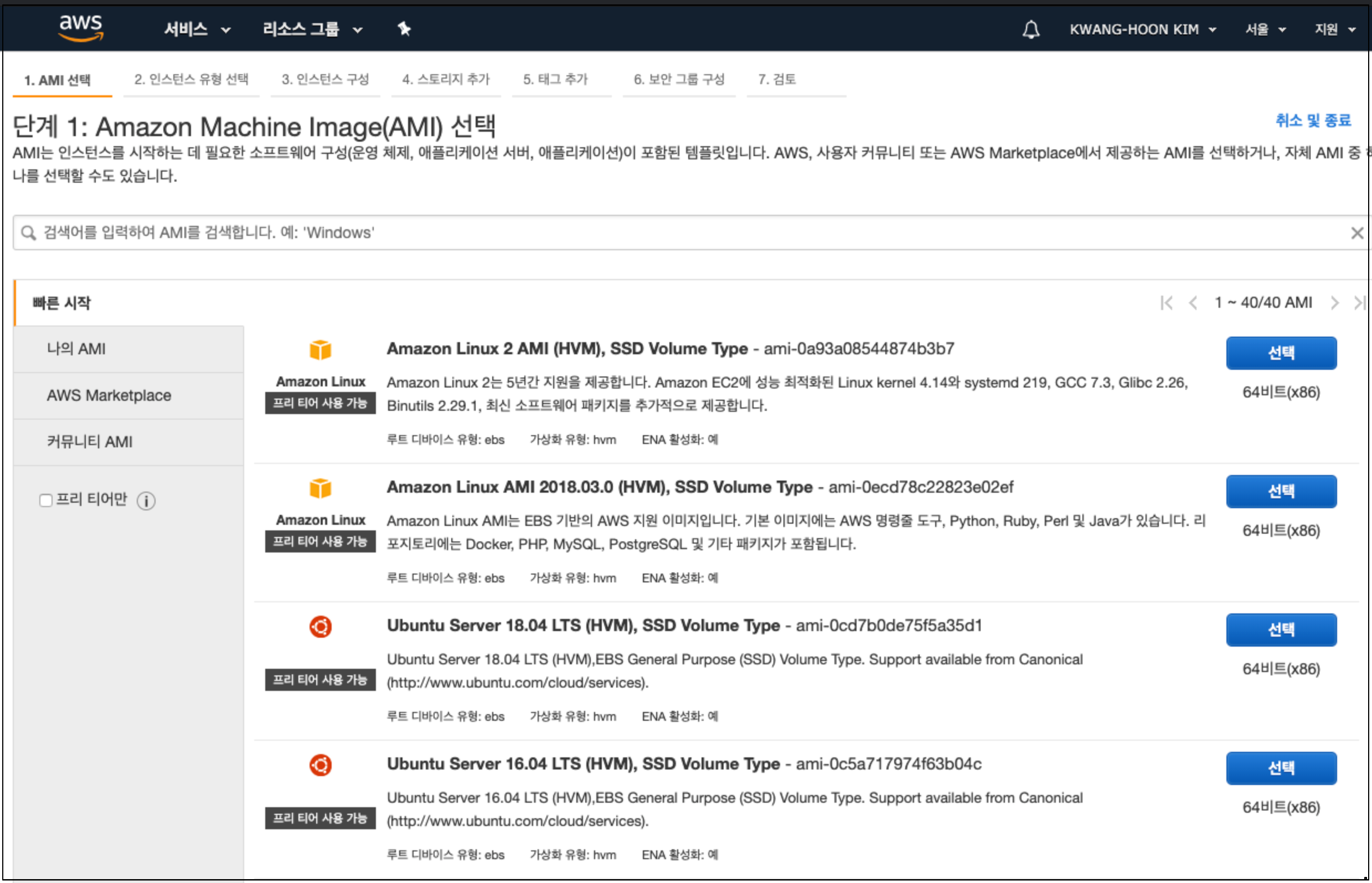 2. AMI(Amazon Machine Image) 선택